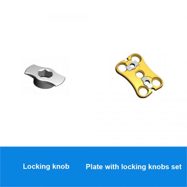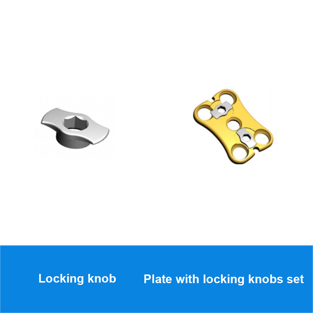 MATRIS cervical plate is supplied with two locking knobs already set in the plate. Once the cancellous screws are put in place, the MATRIS locking knob is turned with a screwdriver and is properly positioned at the top of the screw heads independently of the direction of the screw. Its two tabs large head in largely covers the cervical screws heads without coming up against them. The knob has an anti-loosening system, by enforced embedding and crimping, which prevents their spontaneous rotation and therefore blocks the cancellous screws and prevents their loosening and their migration into the surrounding tissues. In case of recovery or change of screw preoperatively, the surgeon can use a suitable screwdriver to rotate the knob to its initial position.